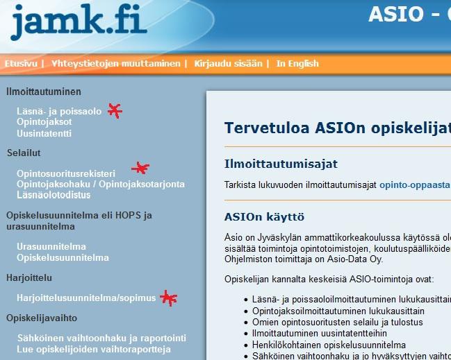 Opiskelijan kannalta keskeisiä ASIO-toimintoja ovat: