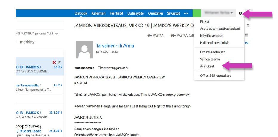 2. Klikkaa oikeasta yläkulmasta ratasta ja valitse Asetukset.