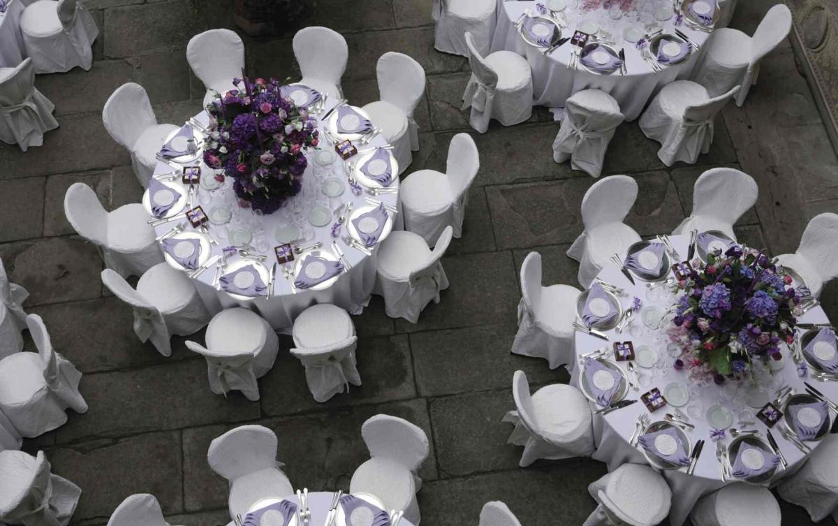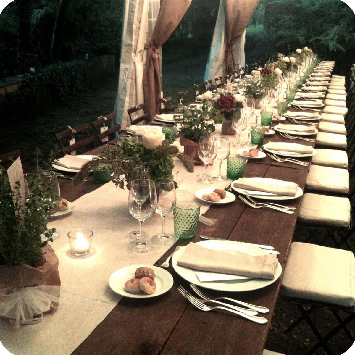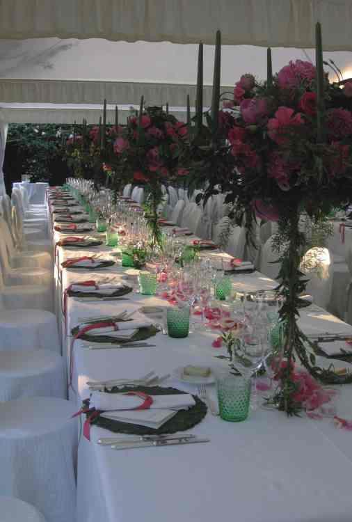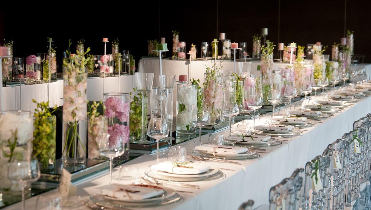 centro del lungo tavolo hanno delicate note floreali mentre lo sguardo si