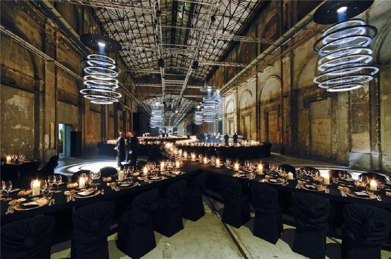 In ex-area industriale, è “l’amore che muove il mondo”, che fa da sfondo su un grande schermo. È un matrimonio fashion.