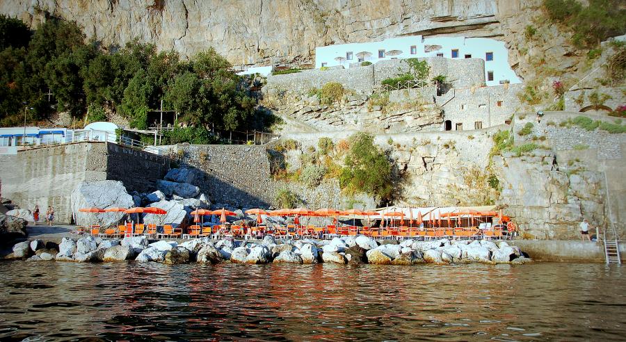 L'incantevole spiaggia, pulita e intima, dà una sensazione di esclusività. Il ristorante è di alta qualità e dalla sua posizione arroccata offre un'incantevole vista sul mare, nei pressi delle tre ville di lusso di Zeffirelli. Il cibo è incredibile e fresco.
