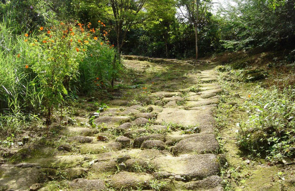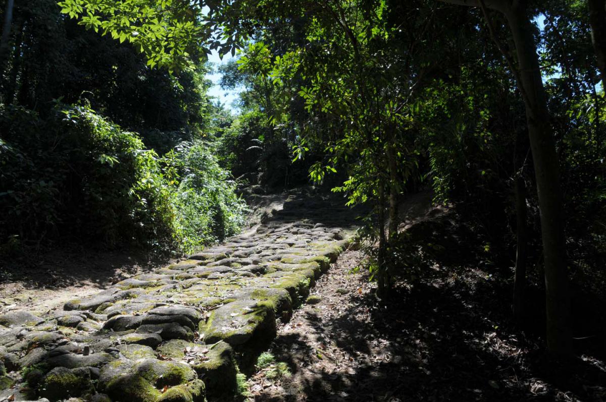 Durante a trilha imaginávamos o sofrimento dos escravos que por ela caminharam, ao andar sobre as pedras com a mesma sensação de dificuldade, ao passar pelos locais úmidos e escorregadios. Enquanto garoava, percorríamos aquela longa trilha. Na caminhada, o lindo som das águas, em frente, um lindo fenômeno: as cachoeiras. A mata tampava o céu azul e o som dos pássaros dominava aquele espaço.