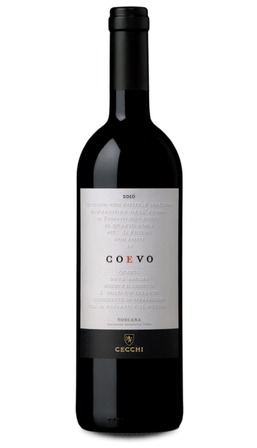 L’etichetta Coevo di Cesare ed Andrea Cecchi è giunta con la vendemmia 2010 alla sua quarta edizione: un vino che viene prodotto solo in annate dalle caratteristiche ideali per i due territori toscani da cui provengono le uve, con un blend che varia a seconda delle peculiarità della vendemmia. Andrea racconta che nel 2006 – anno della prima edizione, seguito poi da 2007 e 2009 - “per 12 mesi questo vino si è chiamato punto di domanda”. Il fatto è che i fratelli Cecchi avevano nel cuore e nelle idee un vino che fosse dedicato al padre Luigi (scomparso nel 2004) e che racchiudesse il grande legame di famiglia con due particolari zone viticole toscane, interpretando la mineralità e l’intensità della Maremma insieme alla raffinatezza del Chianti. Nasce così il percorso che porta alla genesi di Coevo, un segnale di svolta per la storia enologica della cantina Cecchi, un emblema di memoria della tradizione attualizzato nell’oggi, ma soprattutto una strada tracciata per il futuro. Per ottenere il massimo nelle migliori vendemmi, l’uvaggio di Coevo varia pur mantenendo al centro il sangiovese, che nell’annata 2010 è presente per il 60% con l’uva che proviene dai vigneti di Castellina, dalla prima tenuta acquista dalla famiglia Cecchi in Chianti Classico, Villa Cerna. Il cabernet sauvignon è un omaggio al padre Luigi, che a fine anni ‘80 decise di trasformare un uliveto in un vigneto piantando cabernet sauvignon per via della particolare esposizione. Le uve merlot e petit verdot della Maremma sono invece state scelte per dare un tributo al territorio, dove dai vigneti si ottengono espressioni varietali eccellenti.